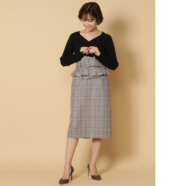 ペプラムベルトツキサキゾメチェックタイトスカート