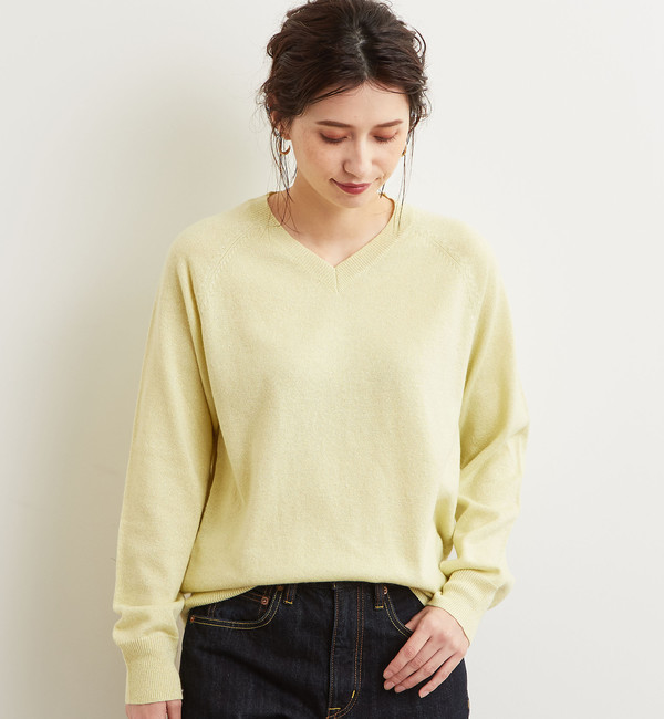 ◎NFC W/RY/N ラメ ラグラン Vネック ニット