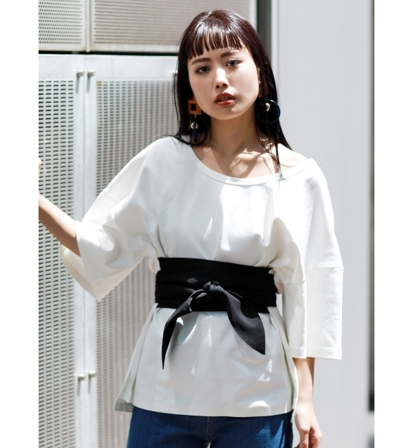 トレンドのサッシュベルトをルーズなTシャツに巻きつけたようなデザインTシャツ。1枚できまるトップスです。デコルテの抜けた衿ぐりで更にこなれ感を演出。※商品画像は、サンプルでの撮影のため、色味や仕様の変更がある場合がございます。※サイズ・混率については変更になることがございますので、 予めご了承をお願い致します。 ムルーア/MURUA トップス|Tシャツ・カットソー