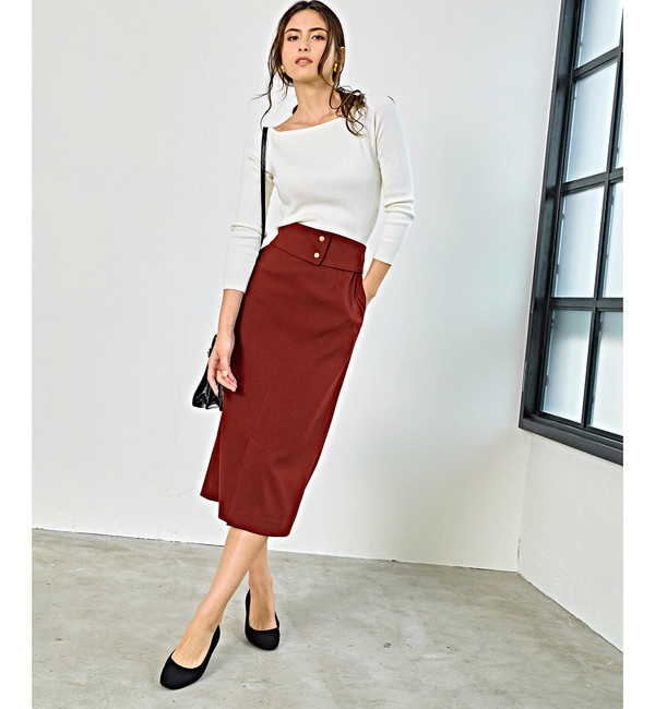 ☆2018AW 新作☆付属の太めの共ベルトでウエストマークする着こなしが新鮮♪ すっきりしたIラインシルエットに、太ベルトをポイントに合わせたヴィンテージムードたっぷりなタイトスカート。スカートの上端まですっぽりとベストで隠すようにベルトを装着するのがポイント。後ろにゴムが通っているので着やすく、多少のサイズ調整も可能。こちらの商品は同素材で ・パンツ SMF フルフランハイウエストテーパードPT 品番:6614-144-0747・SMF フルフラン ベルテッドダブルJK 品番:6622-144-0318・ビスチェ SMF フルフラン ビスチェ 品番:6616-162-0866もご用意しておりますので、セットでの着用もオススメです。店舗へお問い合わせの際は、全国のJewel Changes 各店舗まで下記の品名/品番をお申し付け下さい。品名:SMF フルフラン HW ベルトタイト SK 品番:66241441305※画像の商品はサンプルです。実際の商品と色味、仕様、加工、サイズ、素材等が若干異なる場合がございます。 ジュエルチェンジズ/Jewel Changes Jewel Changes|スカート|スカート