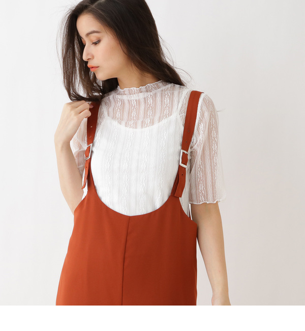 ハイネックデザインの総レースプルオーバーとプレーンなキャミソールがセットになったアイテム。それぞれ別にしてほかのアイテムと組み合わせることができるシンプルなデザインです。衿や袖口のちょっとしたフリルがかわいらしい雰囲気を引き出してくれます。主に夏に着用いただける商品です。 中国製 オゾック/OZOC OZOC|トップス|その他