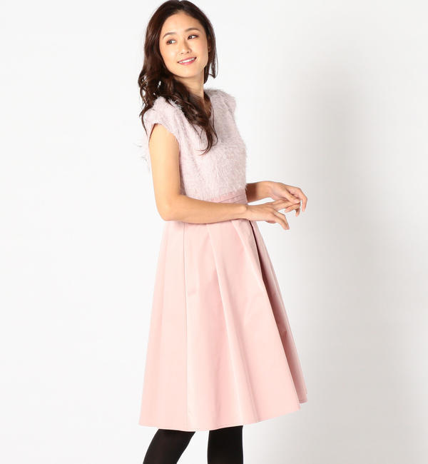 素材感の差が印象的なドッキングドレス。ノースリーブのデザインはすっきりと着こなせるのが魅力です。肩先までを広く覆う作りは、肌が露出しすぎず上品さを演出します。ボレロやショールを重ねるのもおすすめです。 ミューズ リファインド クローズ/MEW’S REFINED CLOTHES ワンピース|ドレス