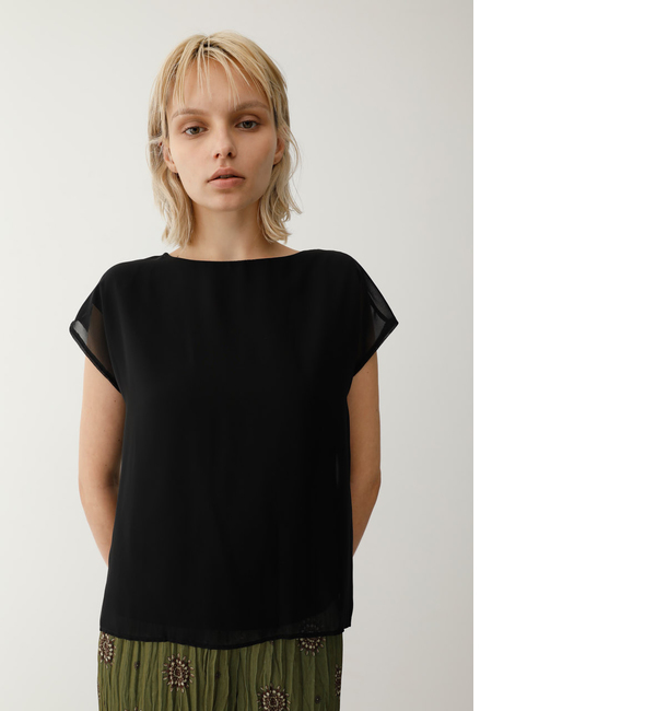 涼しげなシフォン素材が夏らしい雰囲気をプラスしてくれるトップス。バックシルエットも綺麗に見えるようにタックを入れました。シンプルなので、柄物のボトムスとの相性も◎。 マウジー/MOUSSY トップス|プルオーバー