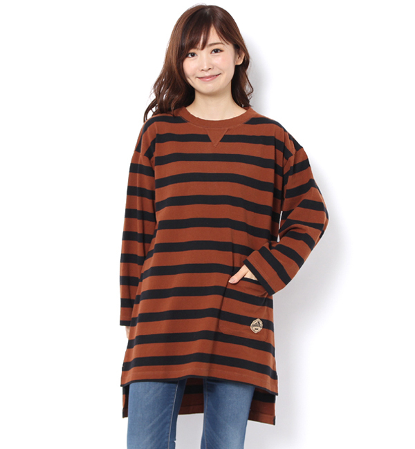 定番のボーダーチュニックはちょこんとあしらったワッペンがアクセント。 前後ヘムや、ややゆとりをもたせシルエットがこなれた印象。ソフトな風合いで着心地も快適です。 トップスにボリュームがある分、ボトムはコンパクトなものを合わせると好バランスにまとまります。 サマンサモスモス/Samansa Mos2 ワンピース|チュニック