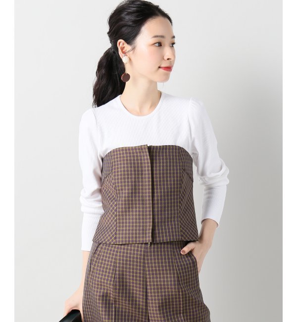 【2018A/W】 Spick & SpanSENSUAL PREPPY ブレザー、チェック、ラインニットなどプレッピーアイテムを 繊細なレースや揺れるような素材のスカートなど、女性らしいアイテムと合わせたコーディネート。 色気を感じさせながらも知性や気品を感じるプレッピースタイルを提案します。 いつものスタイリングをブラッシュアップしてくれるビスチェ。ほど良いハリのある素材で、うしろがゴムになっており優しい着心地。カジュアルになりがちなTシャツスタイルにこのビスチェをつければ、ぐっと今年っぽさを演出できます。シャツやブラウスなどのきれいめなアイテムとも相性よく着て頂けるアイテム。同素材でパンツがあるので、セットアップとして着るのもおすすめ。※こちらの商品は、同シリーズのパンツ18030200600030とのセットアップスタイルもお楽しみ頂けます。※取り扱いについては、商品についている品質表示でご確認ください。 ※こちらの商品は、Spick & Spanでの取り扱いになります。 直接店舗へお問い合わせの際は Spick & Span店舗へお願い致します。 ※店頭及び屋外での撮影画像は、光の当たり具合で色味が違って見える場合があります。 商品の色味は、スタジオ撮影の画像をご参照ください。モデルサイズ:身長:162cm バスト:78cm ウェスト:57cm ヒップ:81cm 着用サイズ:フリー 本体:ドライクリーニング スピック&スパン/Spick & Span Spick and Span|トップス|シャツ・ブラウス