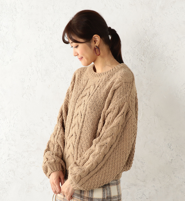 太めのモール糸で編みあげた、しっとりとした風合いが魅力のニットプルオーバー肌ざわりも良く表面感のあるケーブルニットは1枚で様になるアイテム♪ゆったりシルエットが可愛く、着るだけで今年らしい雰囲気に仕上げてくれる◎保温性も抜群で、さらっと着やすくデイリーユースにおすすめです。 チーク/Cheek Cheek|トップス|ニット・セーター