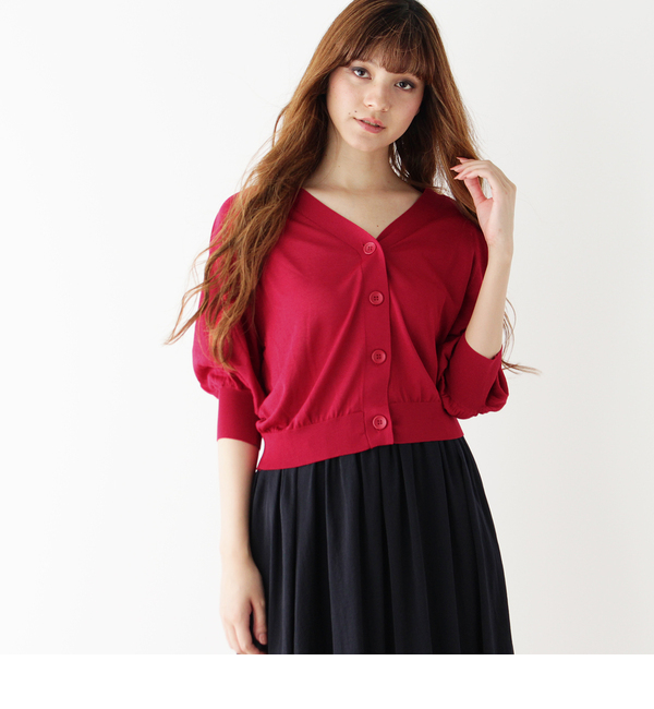 袖のボリュームが今年らしい7分袖のVネックカーディガンです。アームと袖幅を広くしているため、袖にボリュームのあるトップスにもさらりと合わせていただけます。今年の秋は、カラーアクセントで使えるトレンドのフューシャピンクがおすすめです!主に秋に着用いただける商品です。 中国製 グローブ/grove grove|トップス|カーディガン